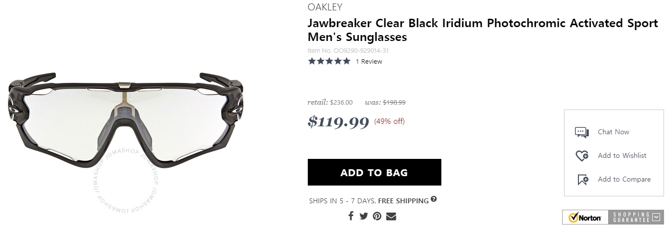내년에 자전거를 타기 위해 자전거 안경 - 오클리 죠브레이커를 블랙프라이데이로 구매하였습니다.