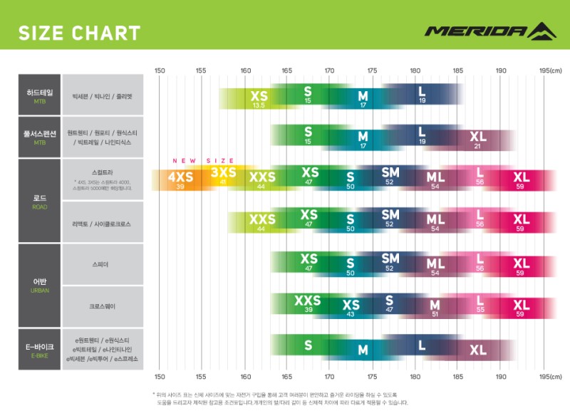 특히 2018년도 로드는 4XS, 3XS 를 추가하여 청소년 150~160까지의 신장도 커버할 수 있도록 나온 듯..