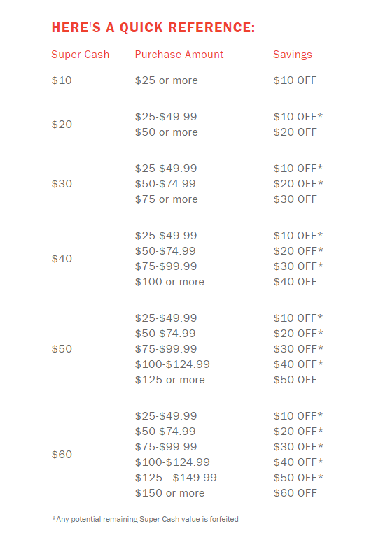 20불 수퍼 캐쉬를 사용하려면 50불 이상사용