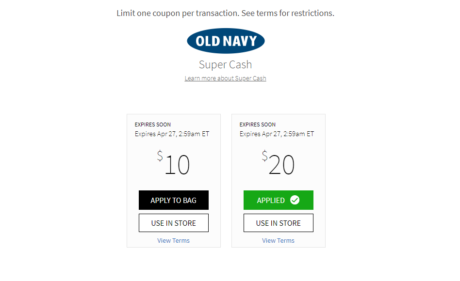 아래는 올드네이비 수퍼 캐쉬( 갭은 갭캐쉬, 올드네이비는 수퍼 캐쉬라고 하네요. )