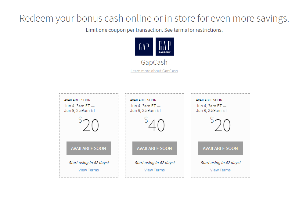 갭캐쉬 및 올드네이비 캐쉬가 얼마인지 알려줍니다.