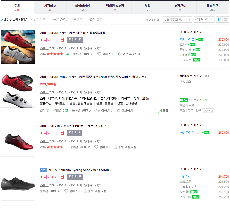 멀린싸이클을 둘러보다가 시마노 카본 클릿 슈즈가 너무 싸게 나와서