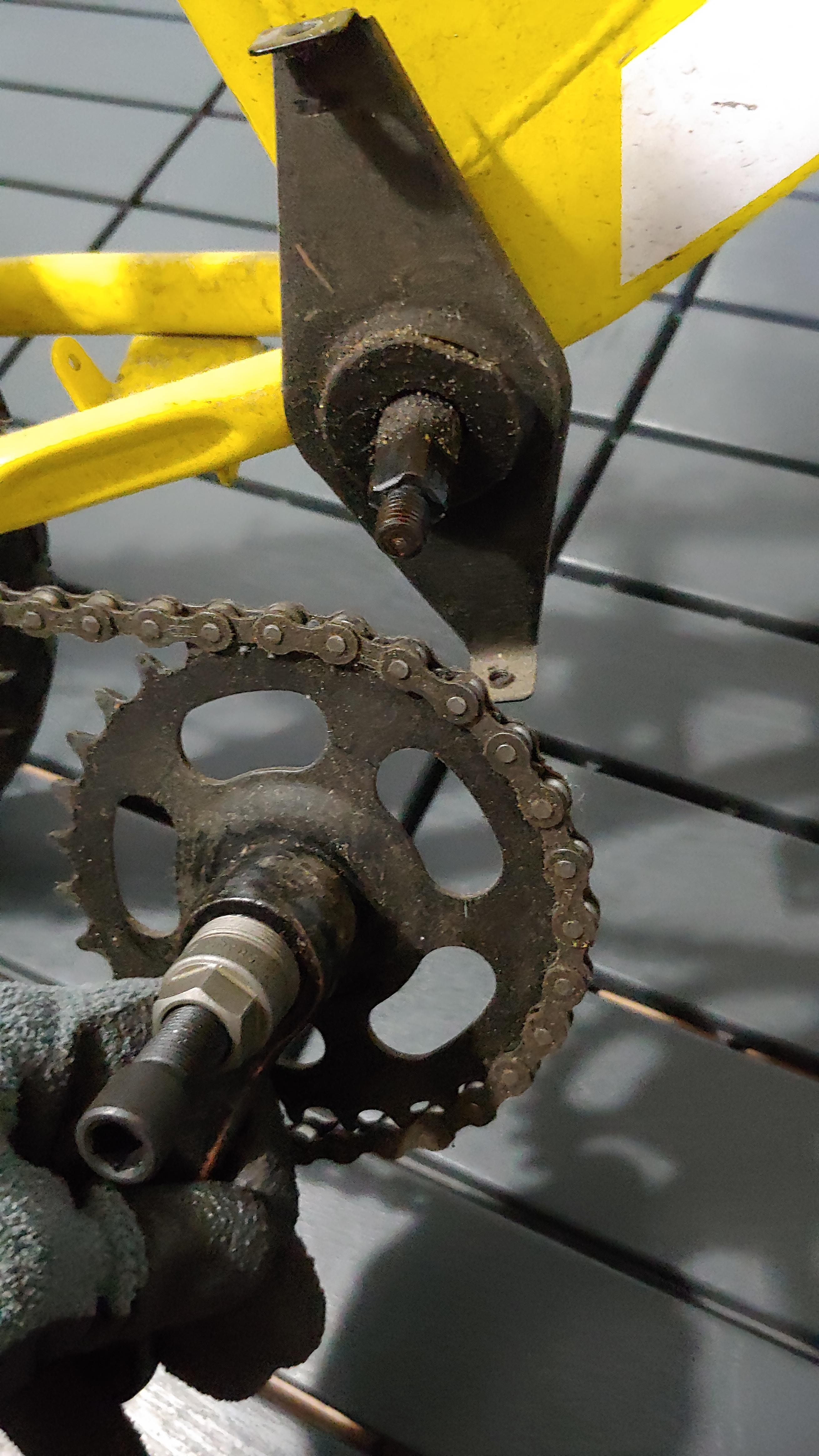 기존 어린이 자전거에 있던 크랭크를 분리중..