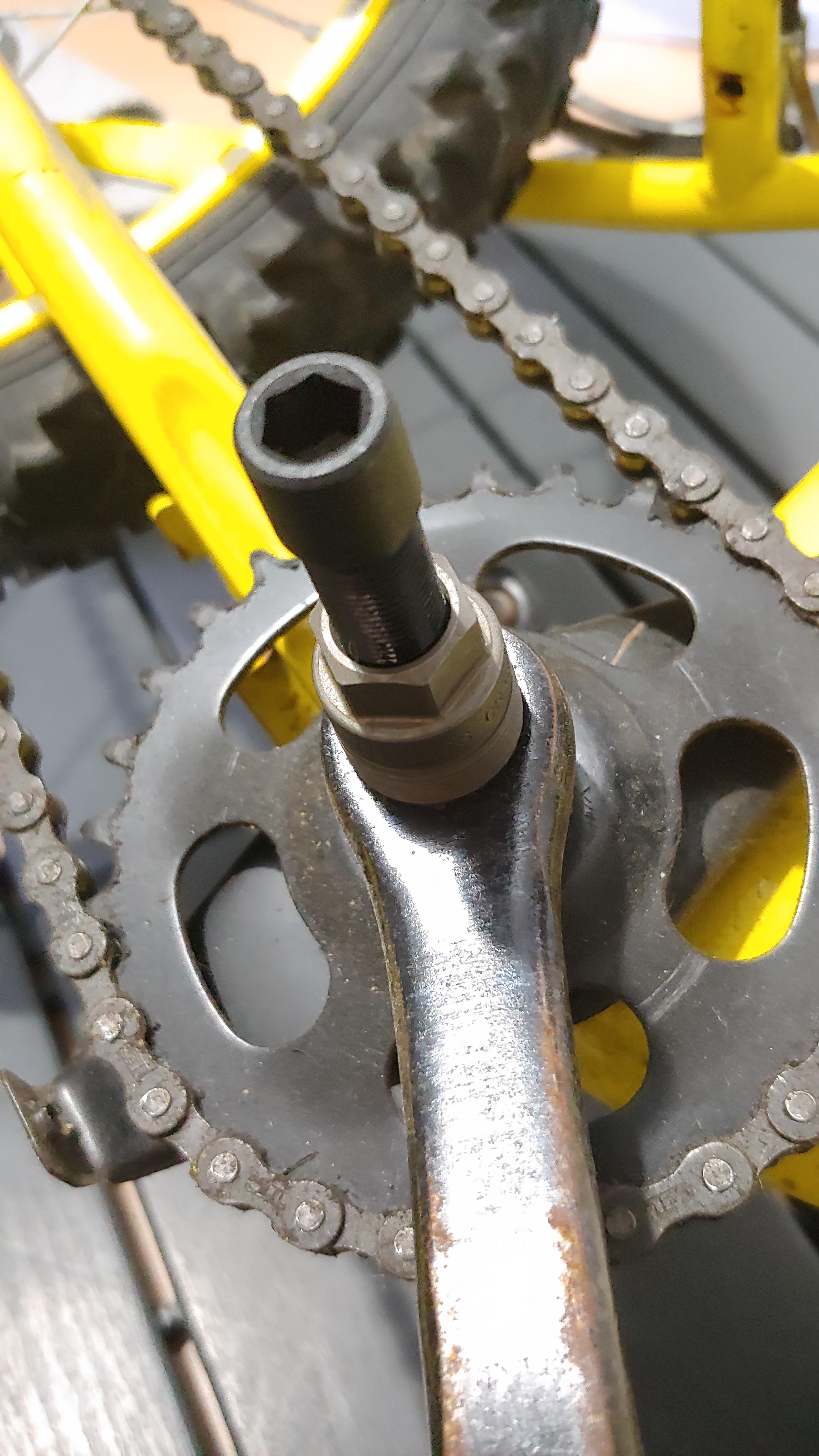 이제 안 타는 자전거의 크랭크를 사용하여 교체를 시도하였다.