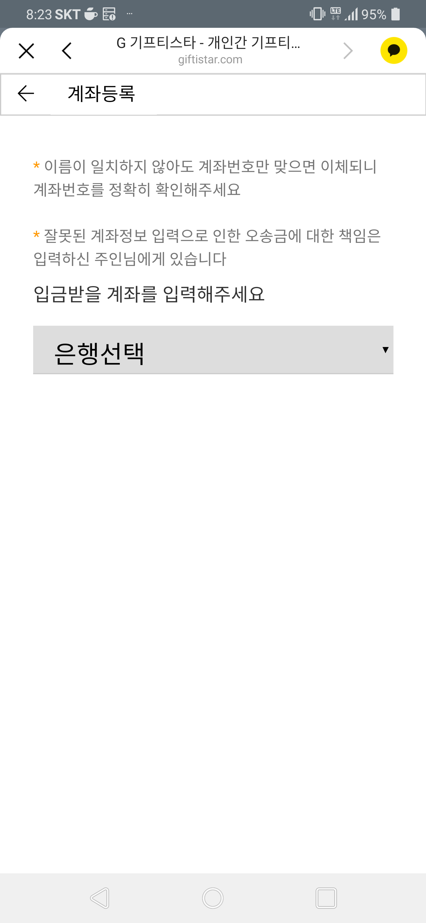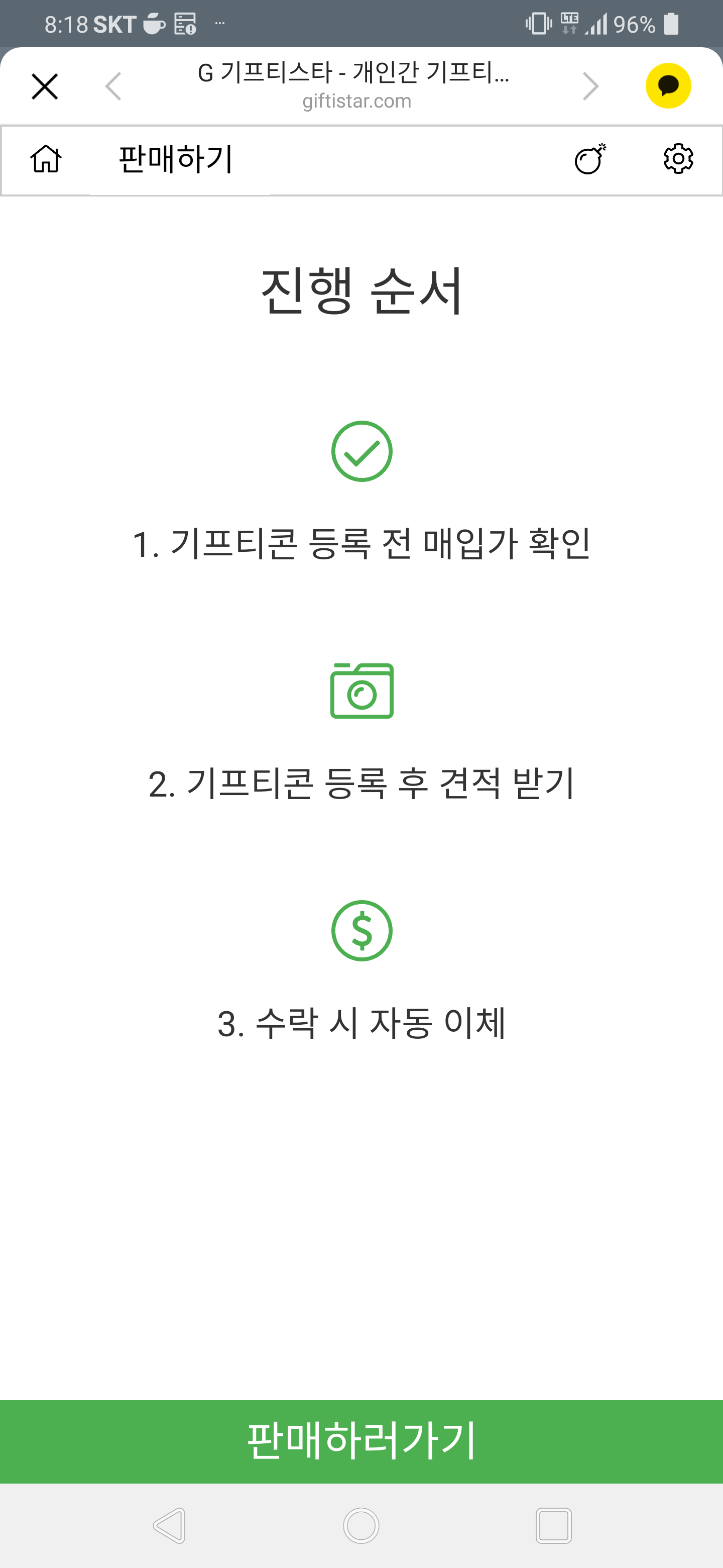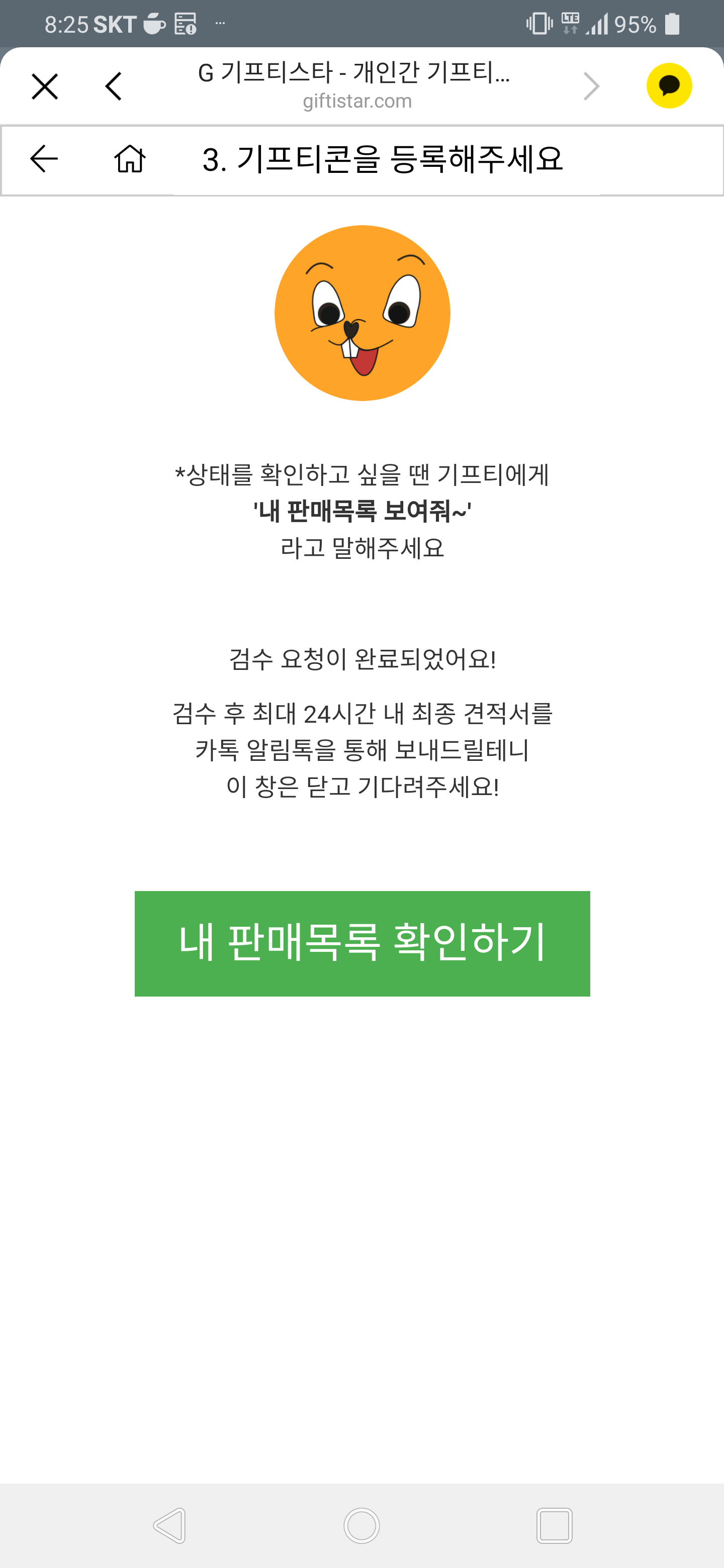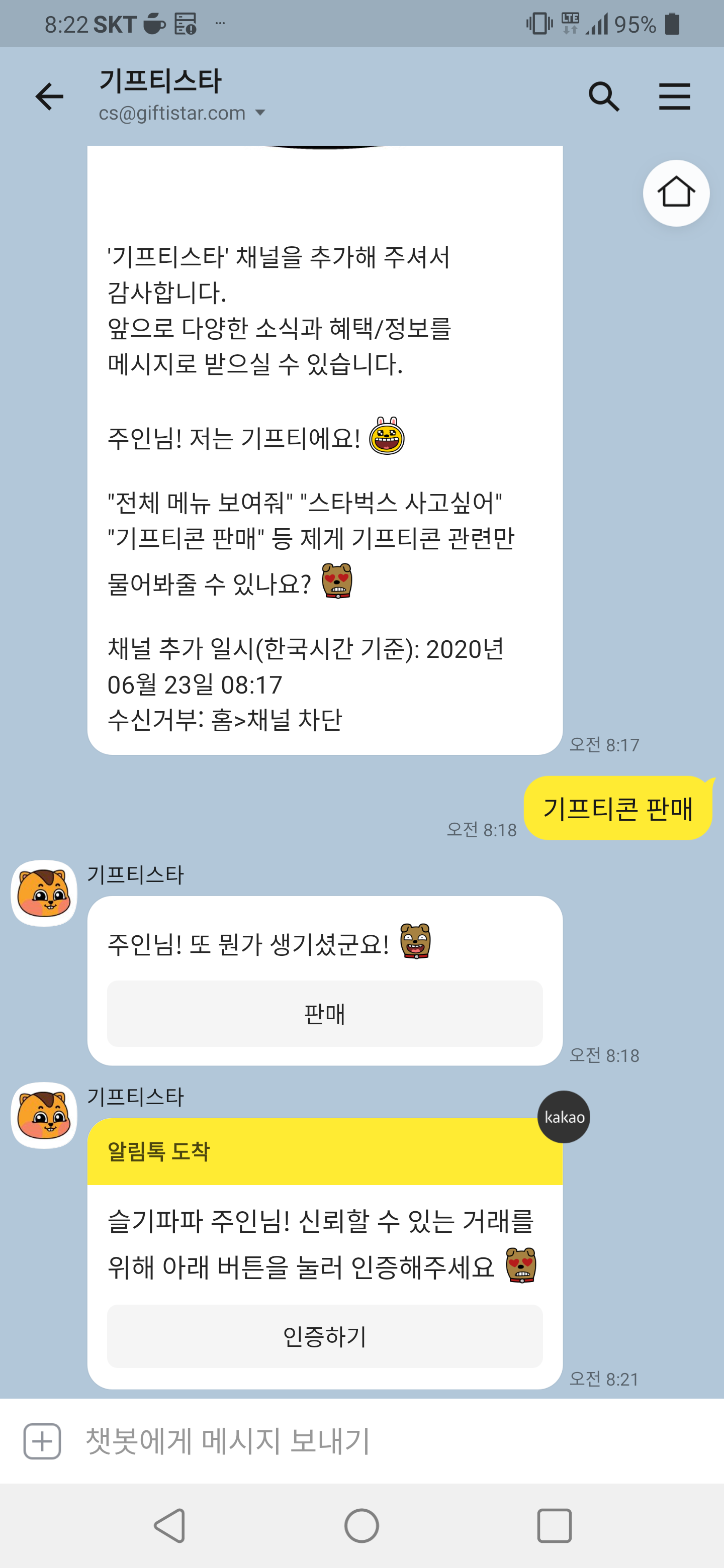위와 같은 문구가 나타나며 "기프티콘 판매" 를 입력할 경우