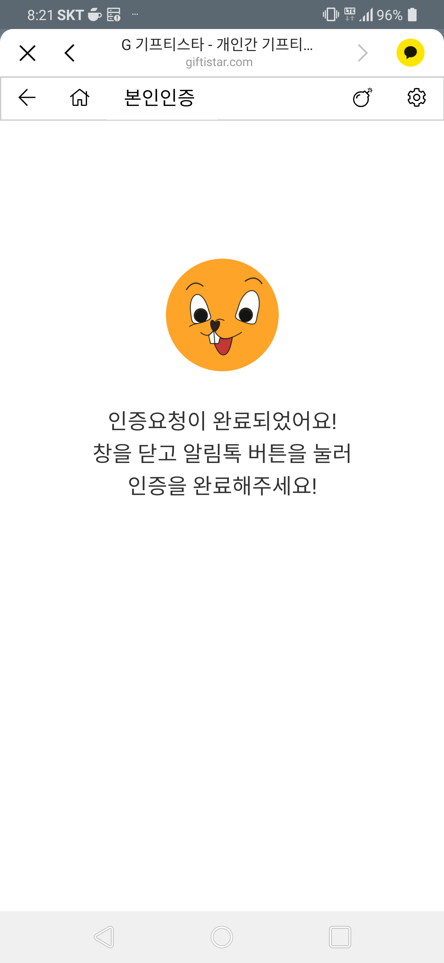 인증 요청이 하고, 이후 카톡으로 인증하기가 온다.
