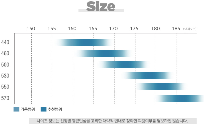 매년마다 나오는 사이즈가 조금씩 틀리긴 하지만, 대략적으로 나와 있는 표를 참고..