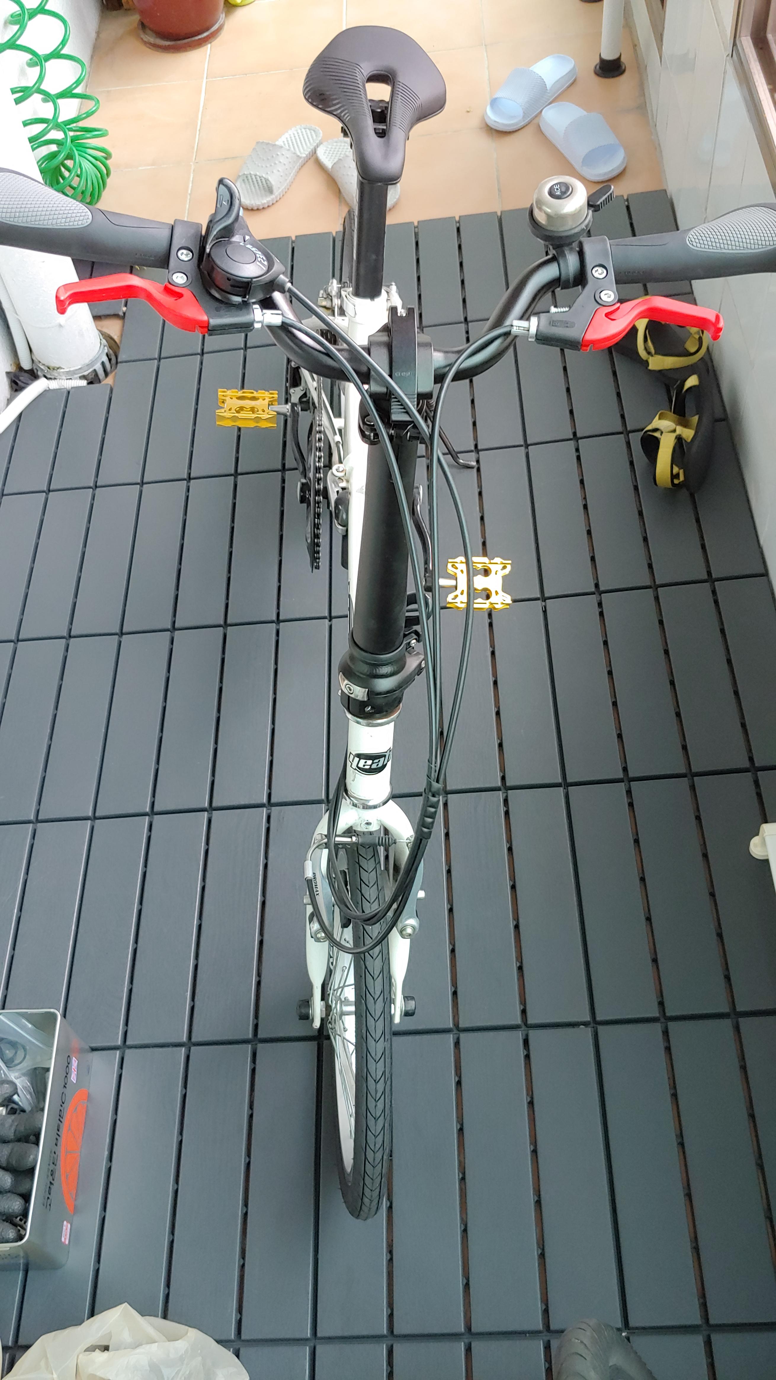 기존 크랭크가 너무 작아서 다시 크랭크를 교체.. 그리고 페달도 접이식의 오랜된 페달에서 경량형 황금색 페달로 교체