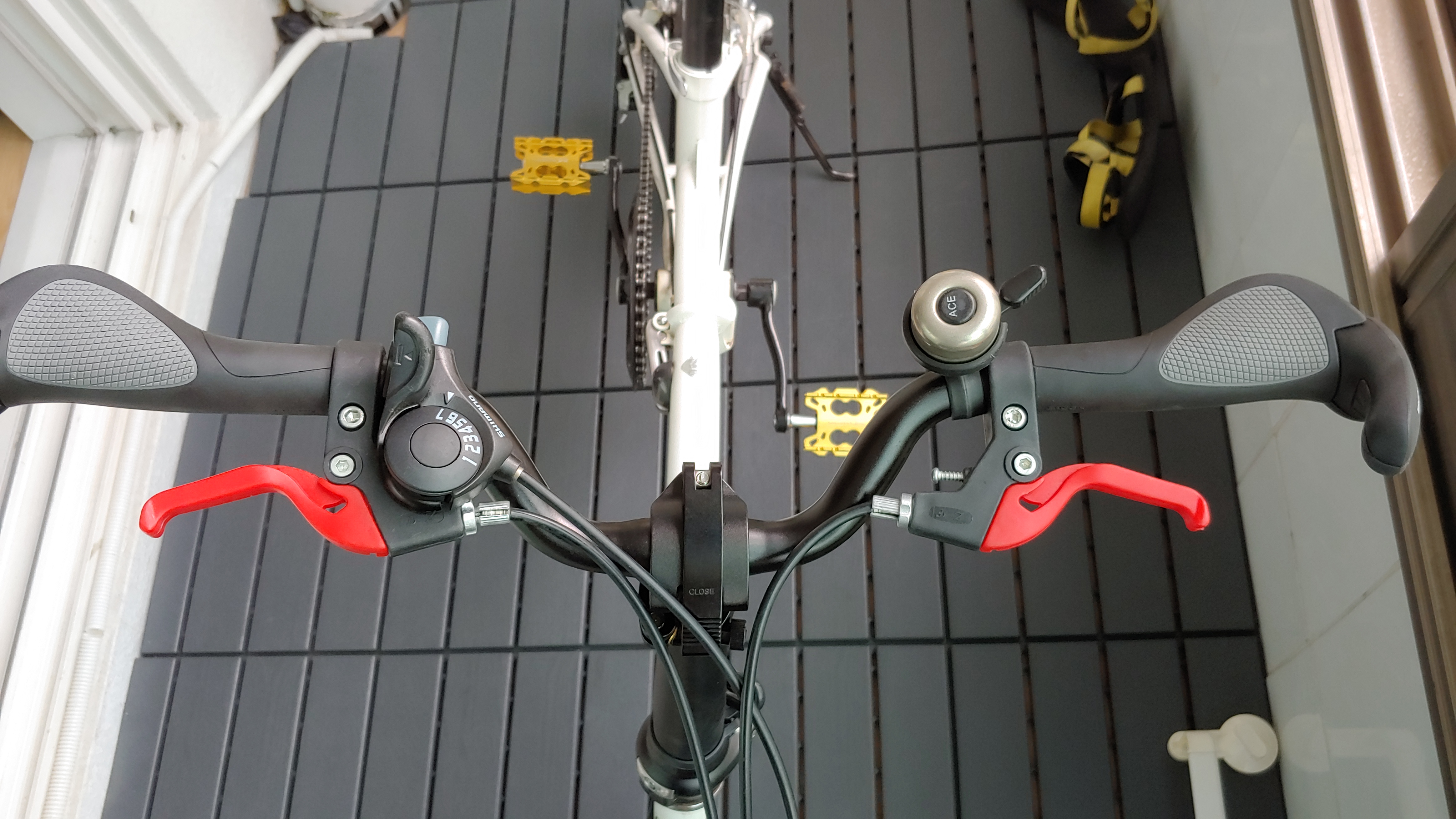 M바 교체, 유아용 브레이크레버 교체, 남아 있던 에르곤 그립으로 교체