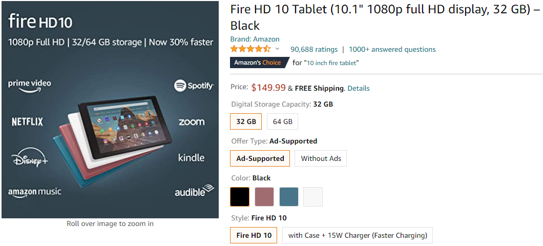 이번 블랙프라이 데이때 아마존에서 FIRE HD 10 을 세일하여