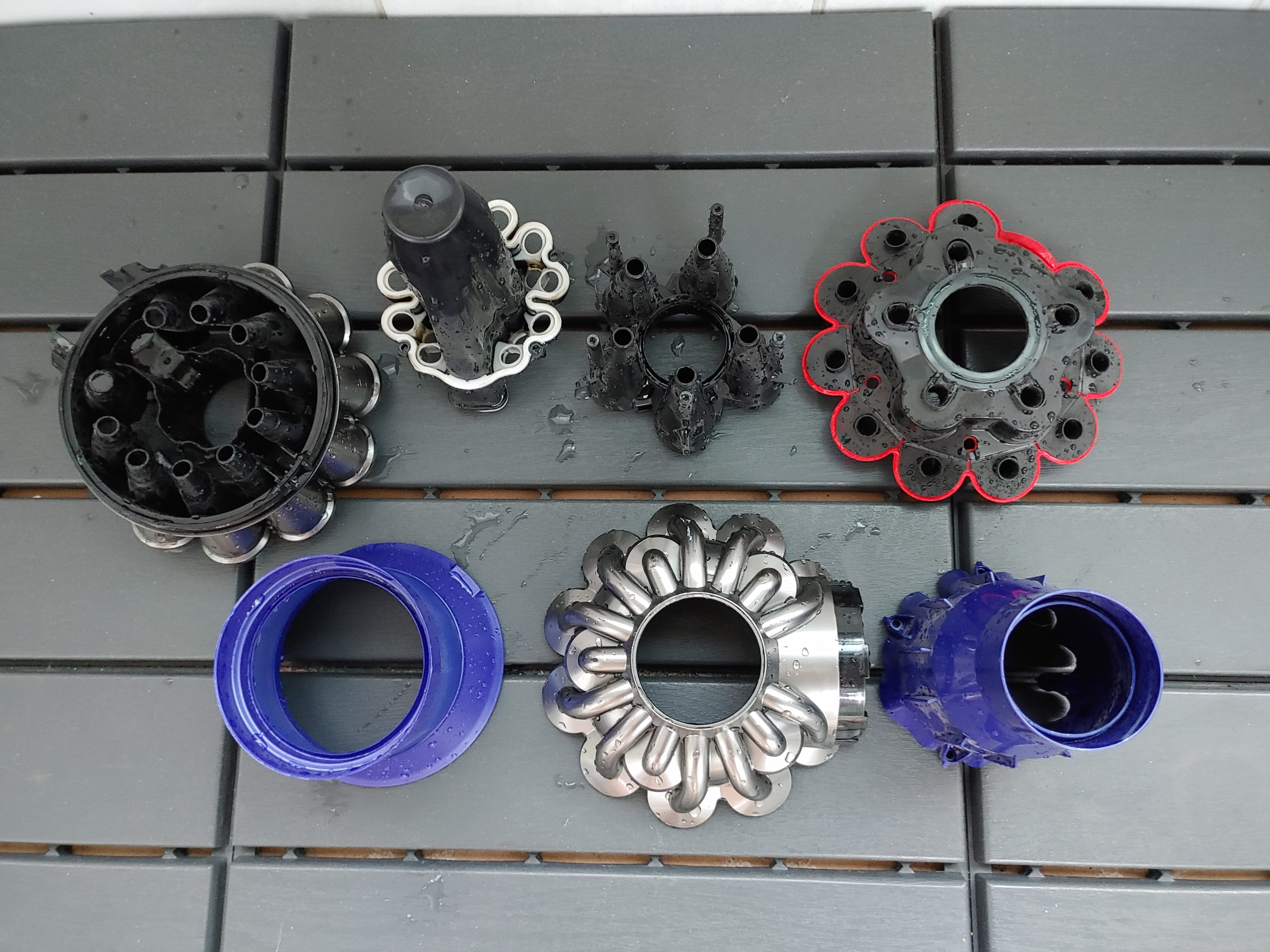 본체와 외부 청소통 분리후 안쪽 필터와 내부 분리..