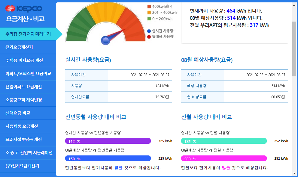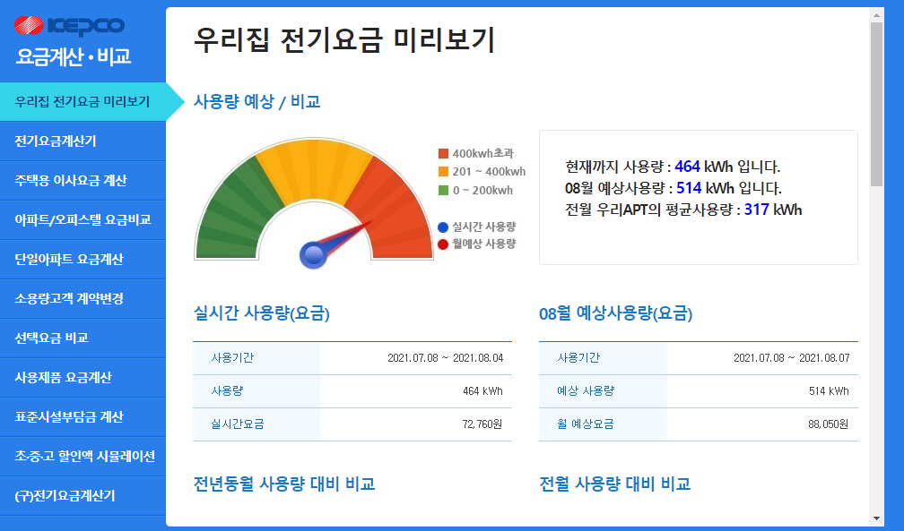 한전에서 전기요금 미리보기 기능이 있어서 추가로 확인을 해 보았습니다.