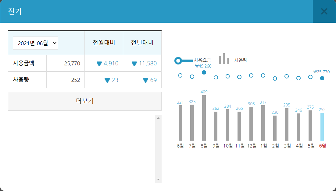 올해 전기세는 아직 나오지 않아서 확인이 불가능한데, 올해까지 나오면 추가로 캡쳐해서