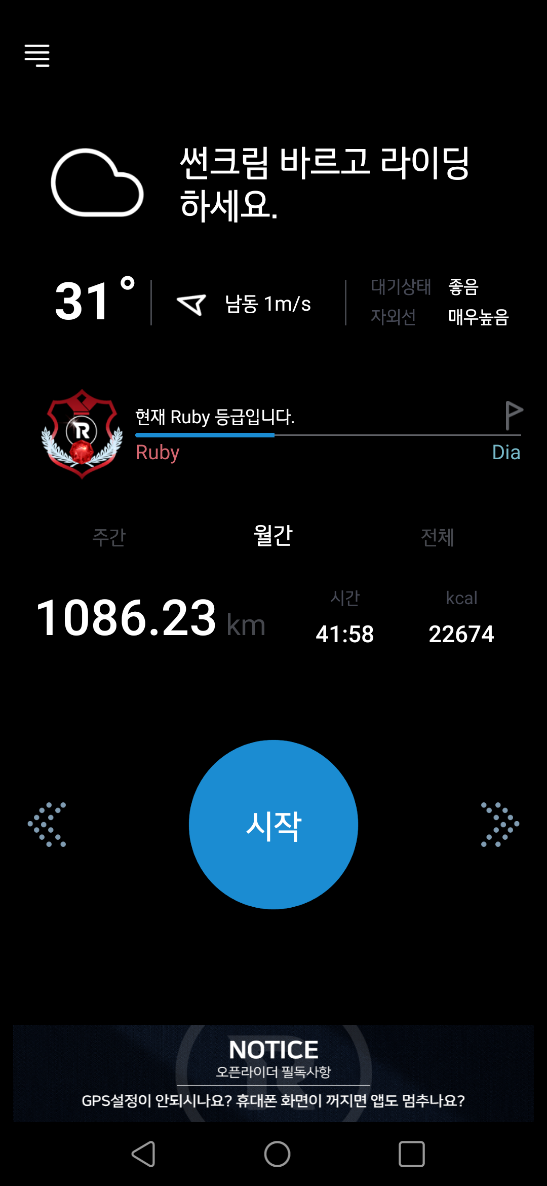 7월에는 약 1000km 를 운행하였습니다.