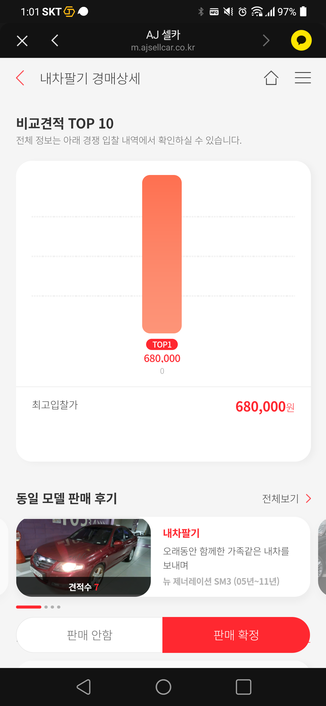 이상하게 경매시 68만원이 최고 점수 였습니다.