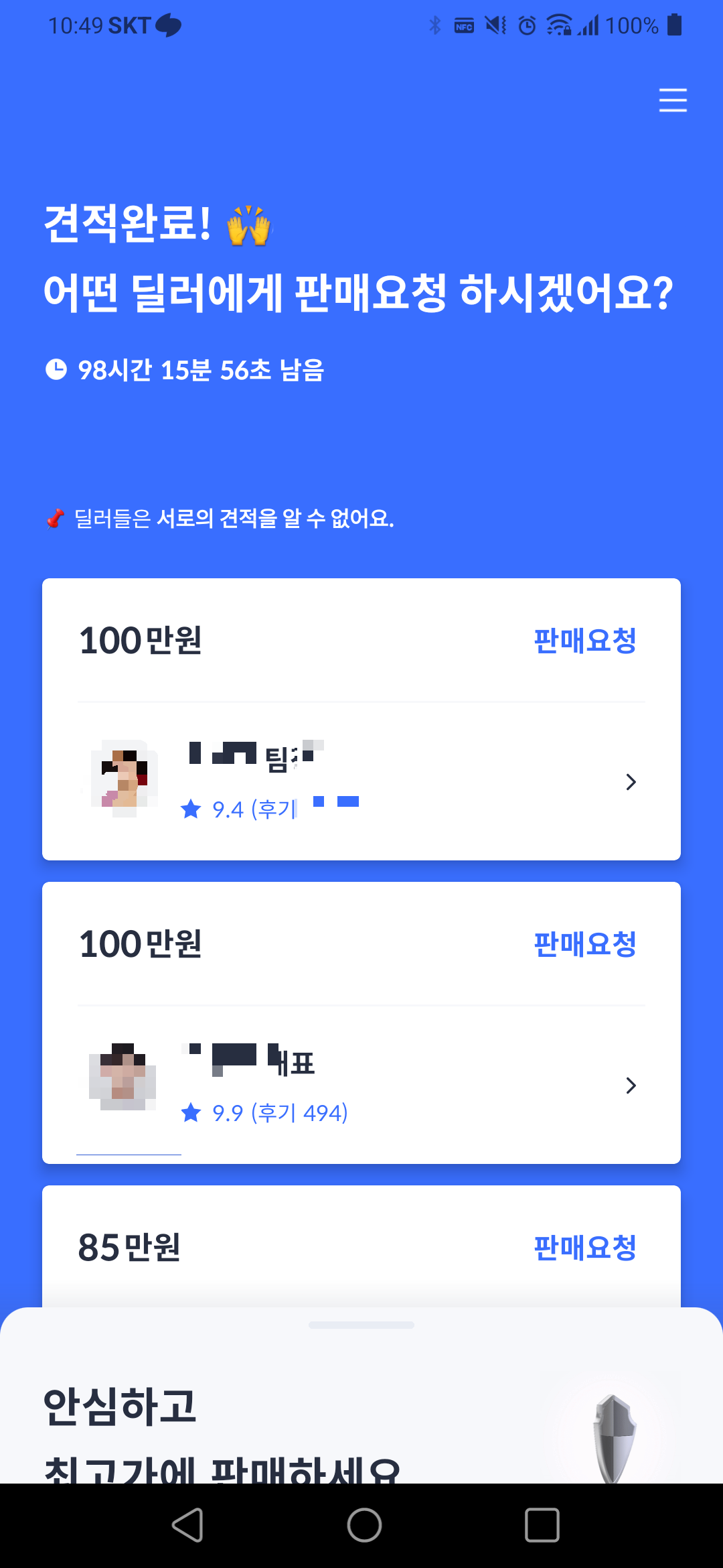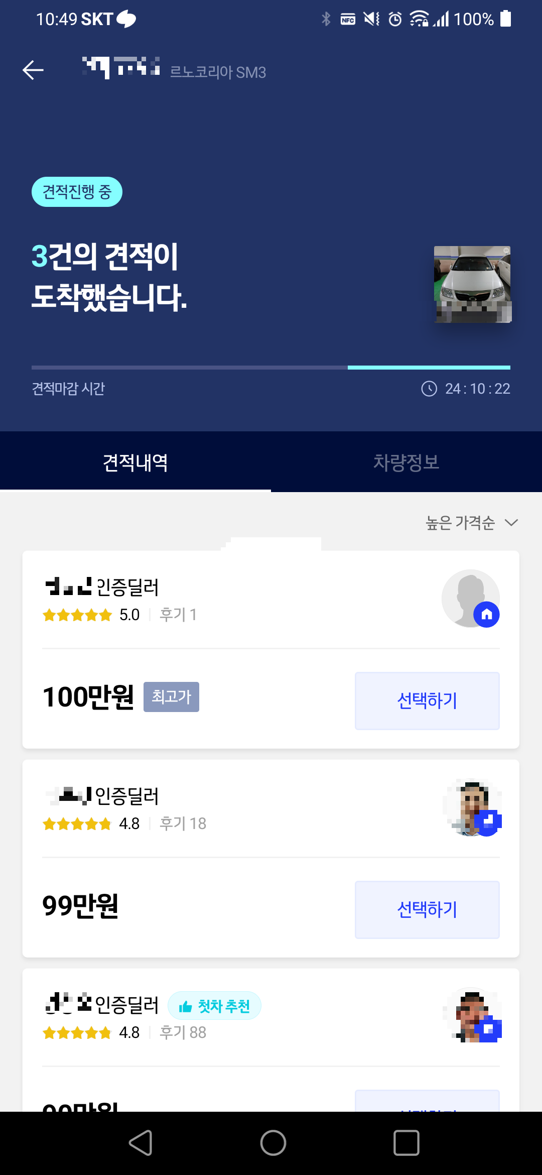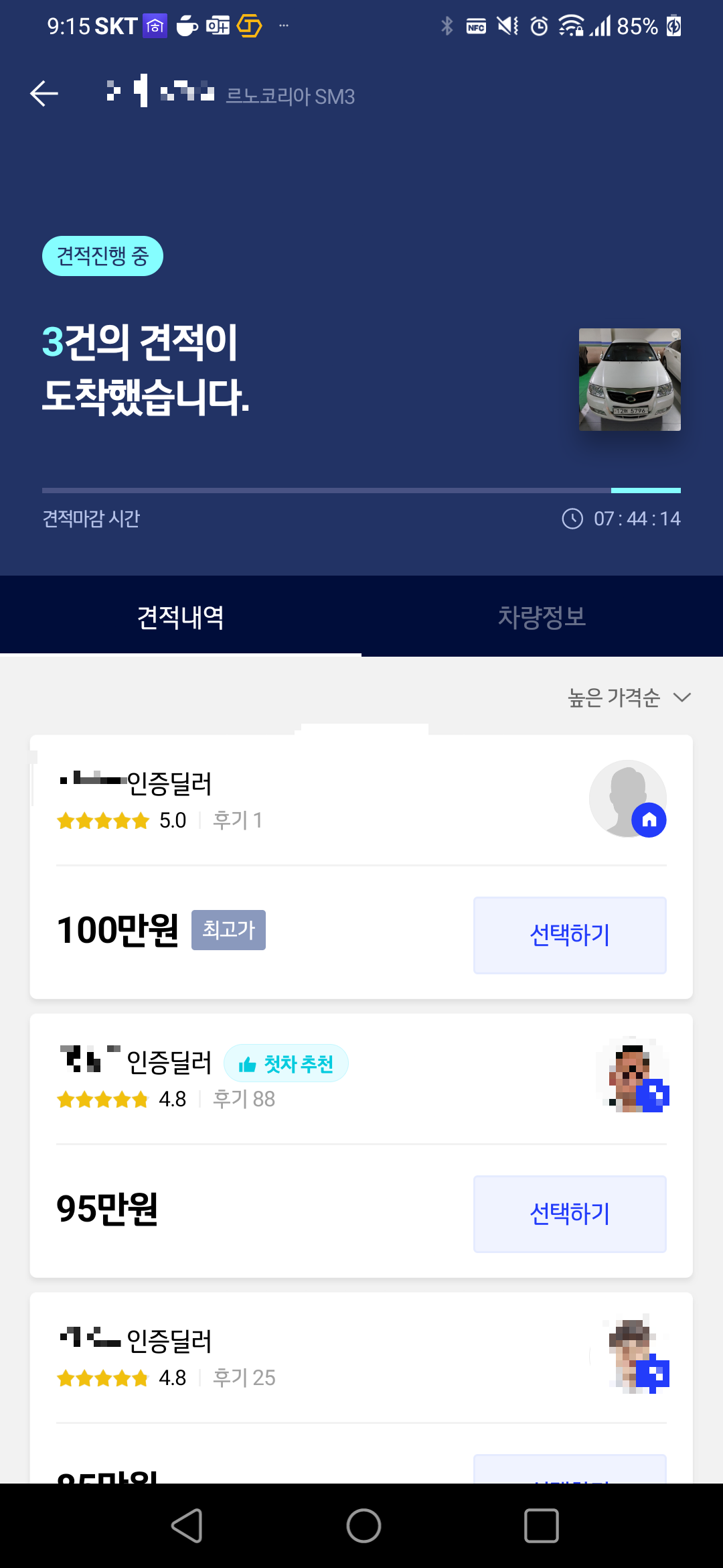 K카의 경우 보러오신다고 연락을 바로 주셨고, 매물 가격을 바로 알려주셨습니다.