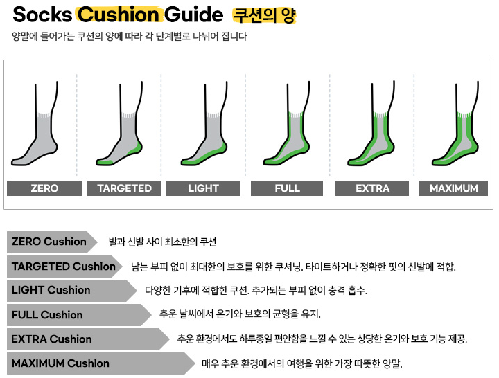 좋은 제품을 고르게 되면 일반 의류(양말)보다 오래 사용할 수 있게 된다.그래서 등산, 달리기 선수, 자전거, 오래 서서 일하는 분들 등등