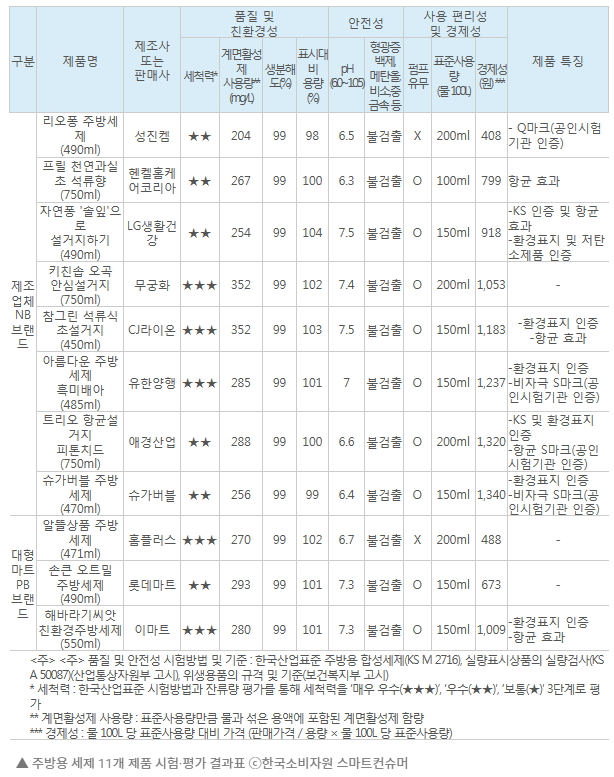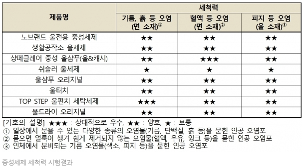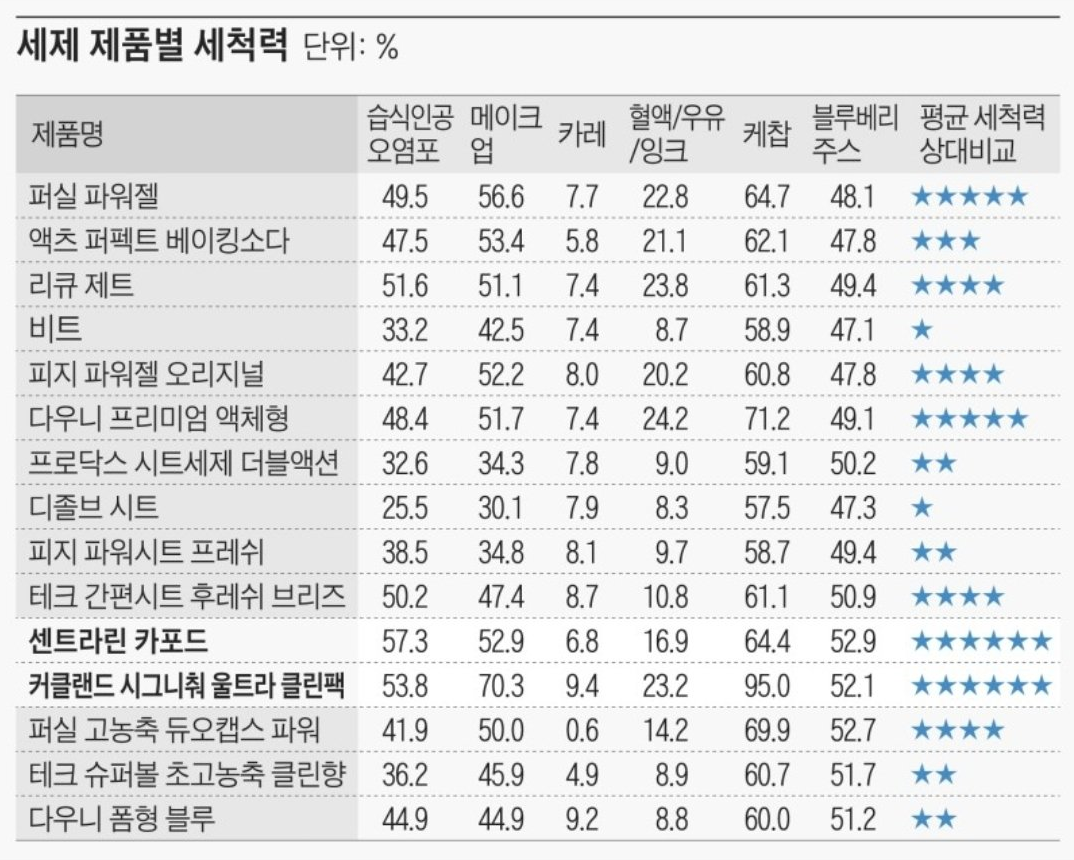 중성 세제 세척력 비교