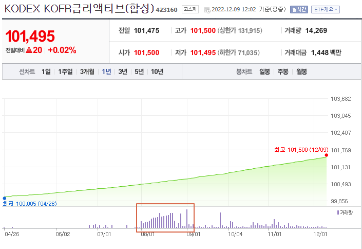 이제 12월에 금리 상승은 거의 끝물(내년 초~중반)이 될 것 같아서 위 ETF(금리연동)을 모두 팔고