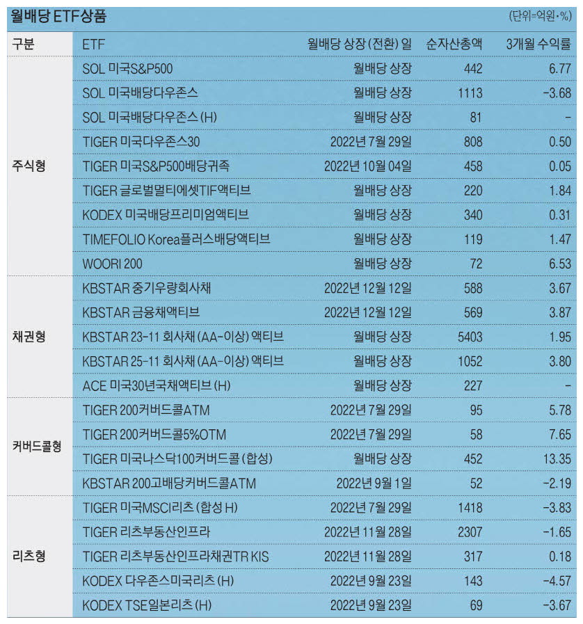 국내 ETF 에도 매월배당 상품이 생기기 시작했습니다.