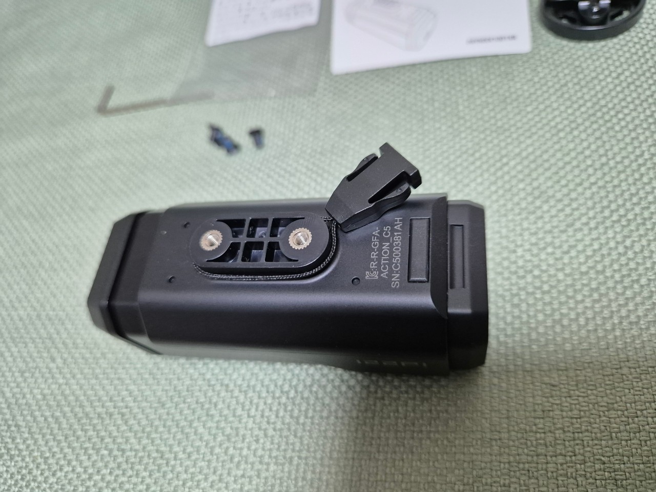 우선 여러가지 설명서 중 본체에 부착할 본체 고정 나사와 낙하 방지 케이블을 합체 합니다.