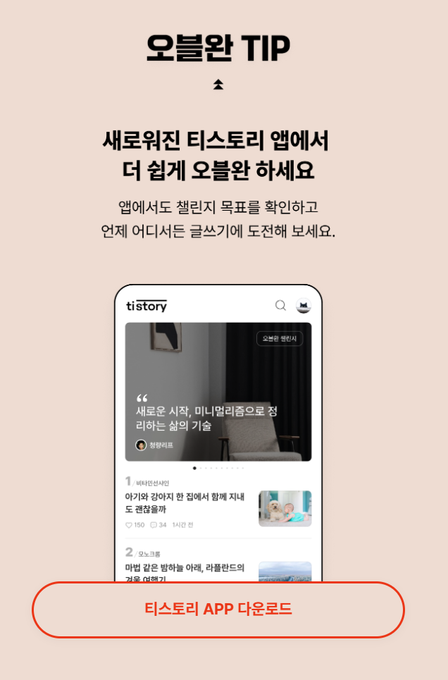 티스토리에 오랜만에 들어가니 오블완 챌린지 라는 것이 나타났다.