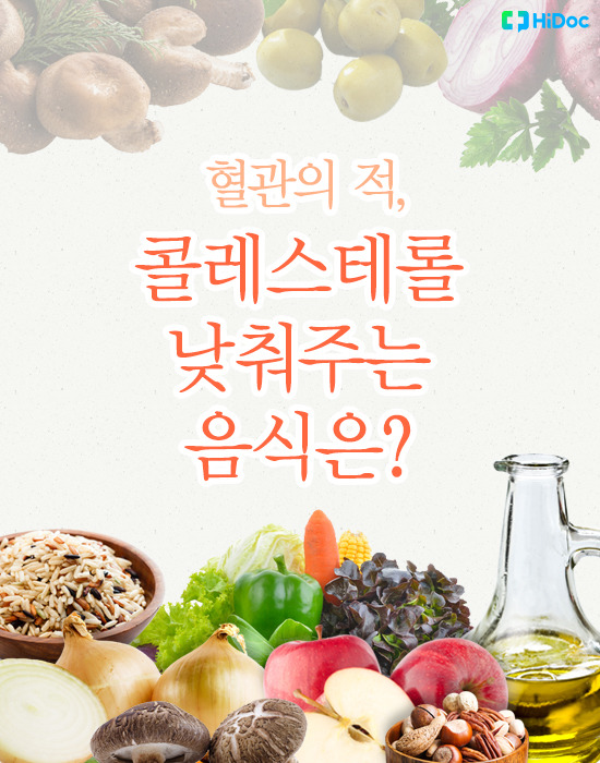 [1] 닥터나우 - 콜레스테롤 높은데 식단 고민이라면? 콜레스테롤 낮추는 ... (https://doctornow.co.kr/content/magazine/105822e25dd041fd97e65968fec7d24d)