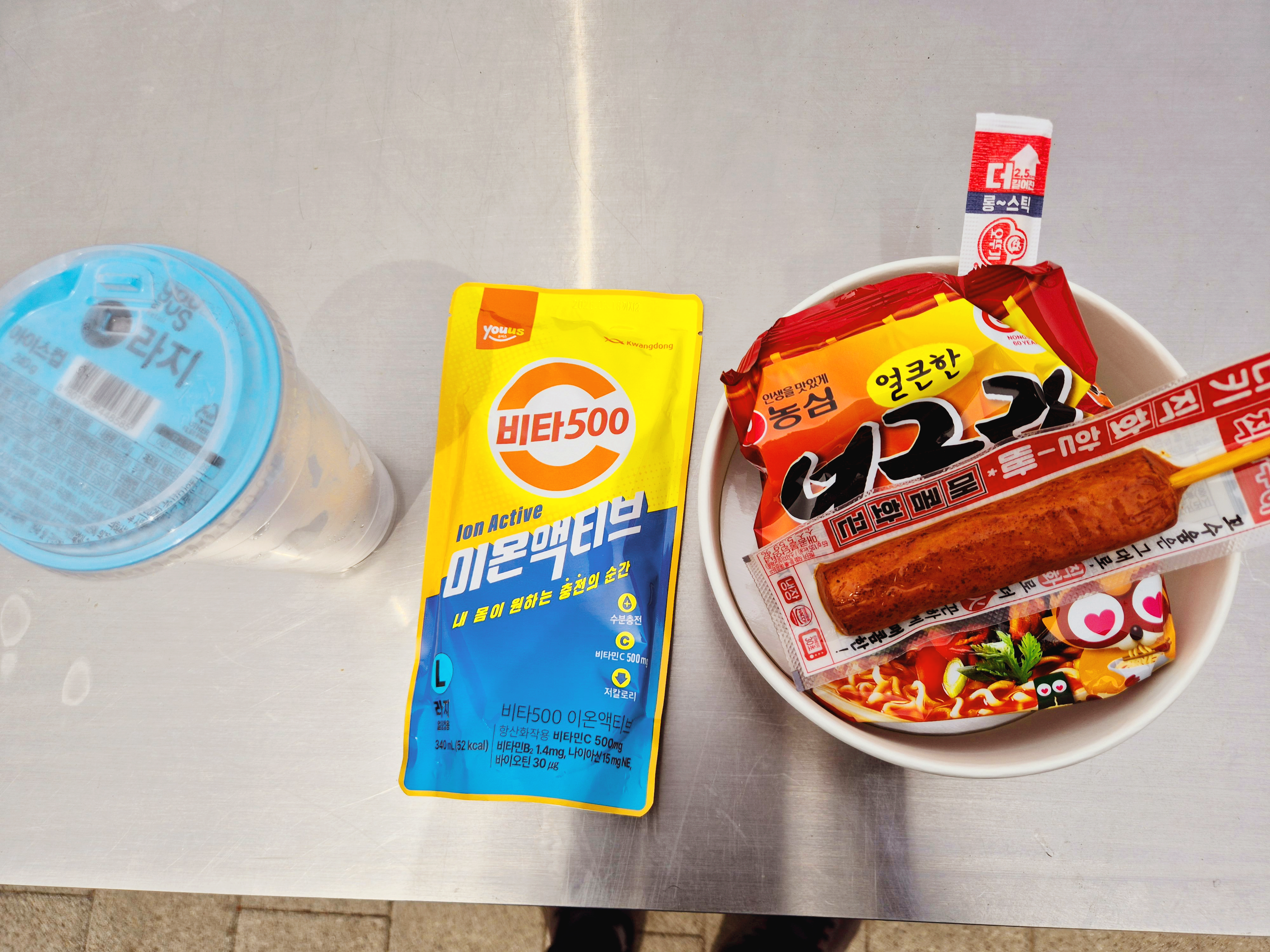 잠시 보급겸. 가는 길에 한강르네상스에서 한강 라면 + 비타500 이온액티브로 충전.
