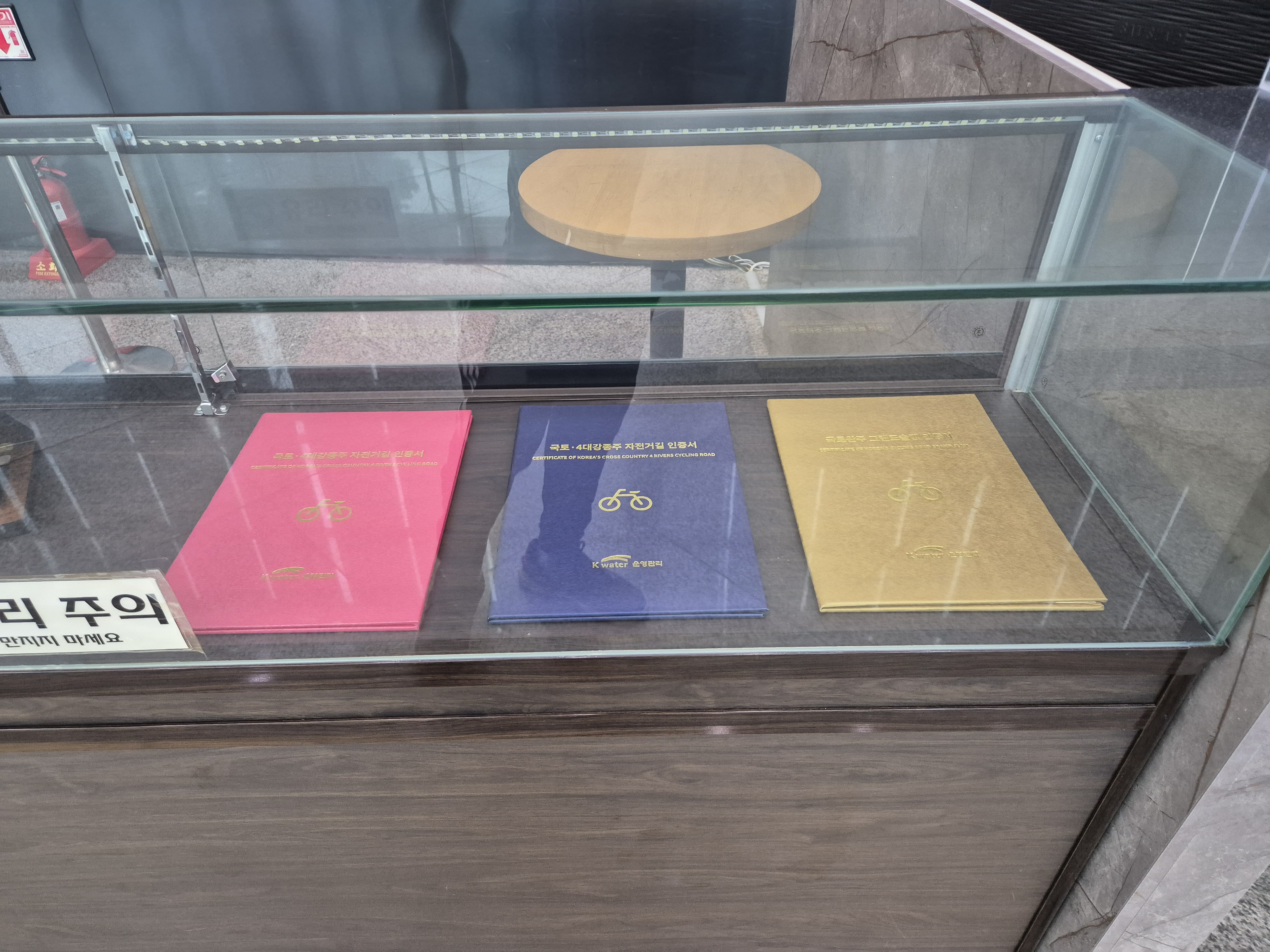 9시 30분 처음으로 수첩구매, 자전거길 지도를 같이 구매하였습니다.