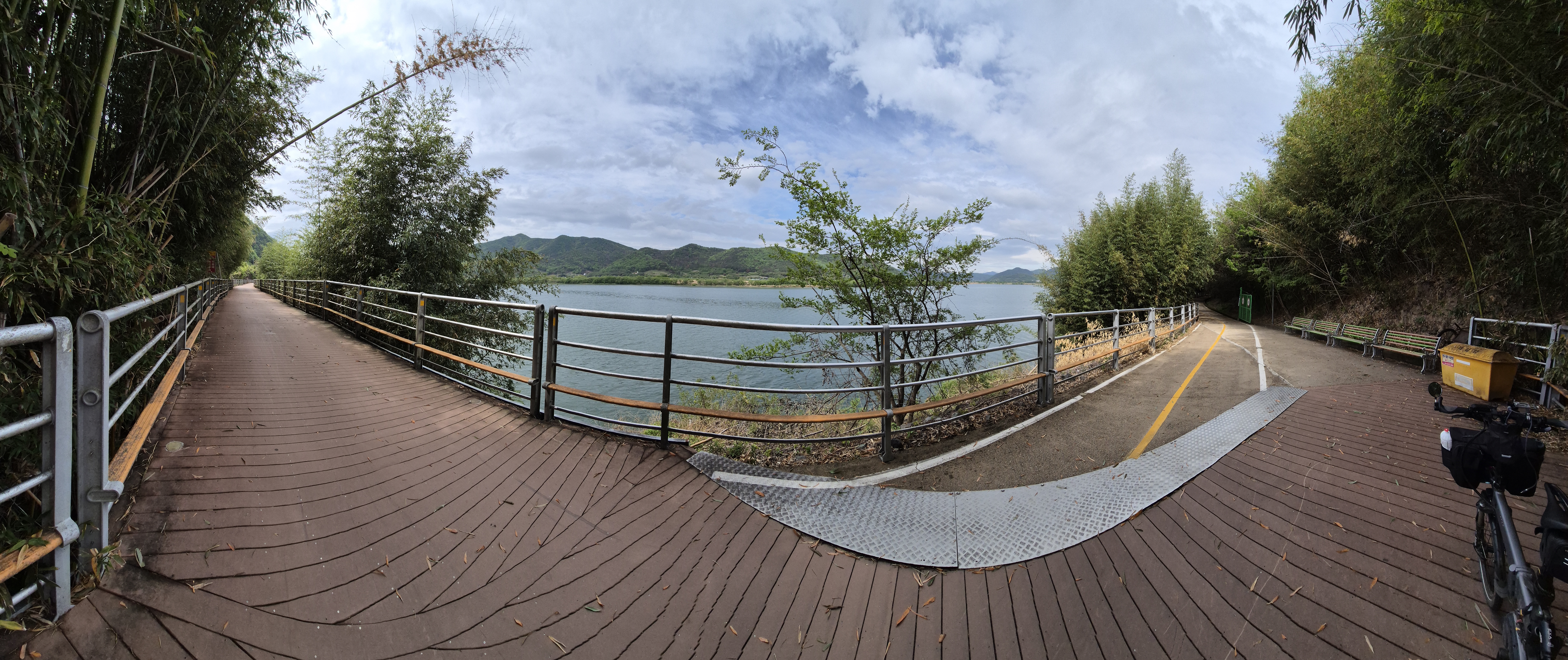 낙동강 위에 데크를 올려서 끝없이 이어지는 길입니다.